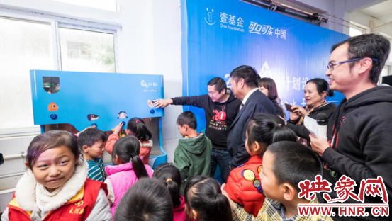 (2016年10月28日,周口)“天冷了,可以直接有干凈的熱水喝,太好了?!眹掳惭b上的凈水設備,姚集元橋小學的孩子們十分的好奇。