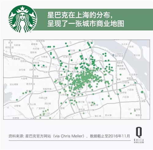以目前星巴克在全球布局最密集的城市之一上海為例:目前近 500 家門店已經(jīng)覆蓋整個市中心、以及后期開發(fā)出來的數(shù)個城市副中心。