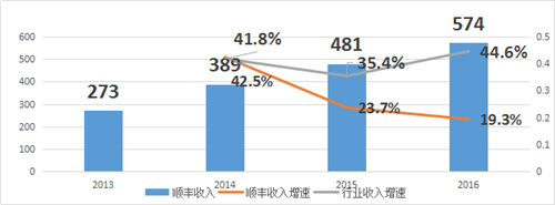 3月順豐發(fā)布了首份年報(bào)。去年順豐控股營收574億,同比增長21.51%,凈利41.8億,相比2015年的11億元,同比增長279.55%,扣除12.3億元非經(jīng)常性損益的凈利潤只增加了10.2億元,利潤增幅變?yōu)?2.85%。