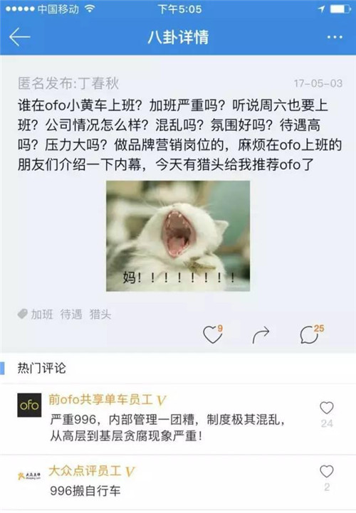 看似無限風(fēng)光的ofo,背后似乎隱憂重重。繼創(chuàng)始團隊被資本架空的消息傳出之后,ofo內(nèi)部貪腐的消息也甚囂塵上。近日,實名社交平臺脈脈上,有ofo前員工爆料稱:這個公司從高層到基層,貪腐現(xiàn)象嚴重。