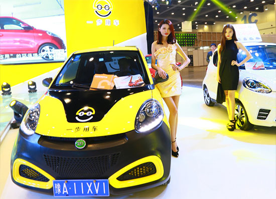 據(jù)了解這些黃色的電動(dòng)汽車全部出自位于新能源展區(qū)T3展位的河南一步用車科技有限公司(以下簡稱一步用車)。
