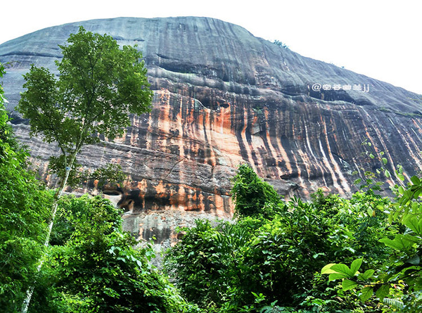 丹霞山之美,是那種把雄奇包裹在雋秀里的含蓄之美。它并不張揚(yáng),遠(yuǎn)望像是一幅優(yōu)美寧靜的水彩畫,顯示出一種優(yōu)雅之美、從容之美和曠達(dá)之美。雖然它的山勢(shì)并不高,但它的許多懸崖峭壁,像刀削斧鑿,直指藍(lán)天,無數(shù)奇巖美洞,隱藏于山中,景色相當(dāng)奇麗。