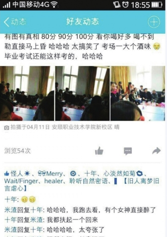4月12日,報道了安順職業(yè)技術(shù)學院一名教師與學生在辦公室飲酒,并聲稱以喝酒多少來定考試成績之后,引起了該學院高度重視。據(jù)了解,目前,涉事教師已停職接受調(diào)查。