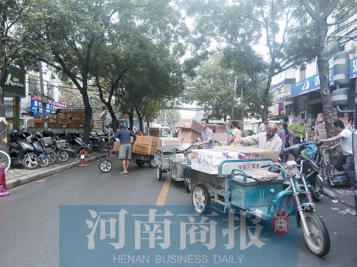 自9月18日《市場(chǎng)外遷收官之年 京廣路商圈暗戰(zhàn)依舊》的報(bào)道見報(bào)后,河南商報(bào)記者不斷接到京廣路商圈附近居民打來的投訴電話。9月22日,記者再次走訪京廣路商圈發(fā)現(xiàn),批發(fā)市場(chǎng)物流、交通、倉儲(chǔ)、消防等方面亂象不斷,成為令附近居民最為頭疼的問題。