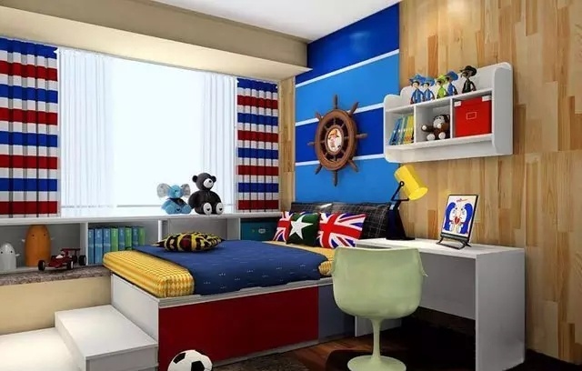 “這是一個男孩房設(shè)計,空間雖不大但是格局方正。設(shè)計師把榻榻米和飄窗一起裝進(jìn)這個兒童房,不僅有了1.5米的床還能留出較寬敞的活動空間!”