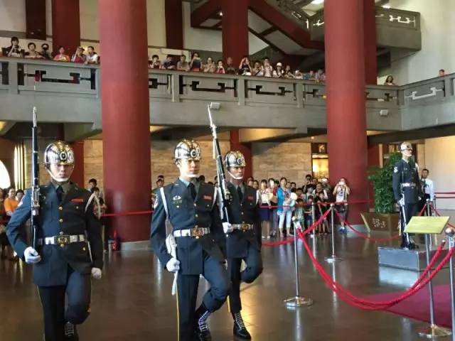 紀(jì)念堂內(nèi)衛(wèi)兵交接班儀式,成為一道風(fēng)景,他們每小時交接一次,站崗期間連眼睛都不能眨一下。