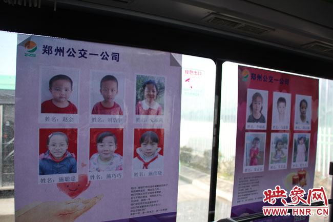 映象網(wǎng)快訊(記者 燕子丹 文/圖)“媽媽,車廂的玻璃上怎么有這么多小朋友的照片呢?”“這些都弟弟妹妹都是被壞人騙走的,他們現(xiàn)在找不到媽媽了。”“這么冷的天,沒有爸爸媽媽在身邊真可憐。”1月8日上午,在鄭州公交B12路公交車上,乘客看到車廂的玻璃上有不少被拐兒童的照片,有的孩子的甚至還不足滿月,不少人紛紛拿出手機(jī)轉(zhuǎn)發(fā)朋友圈。車長劉建濤告訴記者,制作這樣的車廂希望大家都能通過拍照轉(zhuǎn)發(fā)朋友圈,讓更多的人了解這個信息,幫助這些孩子盡快找到自己的父母。