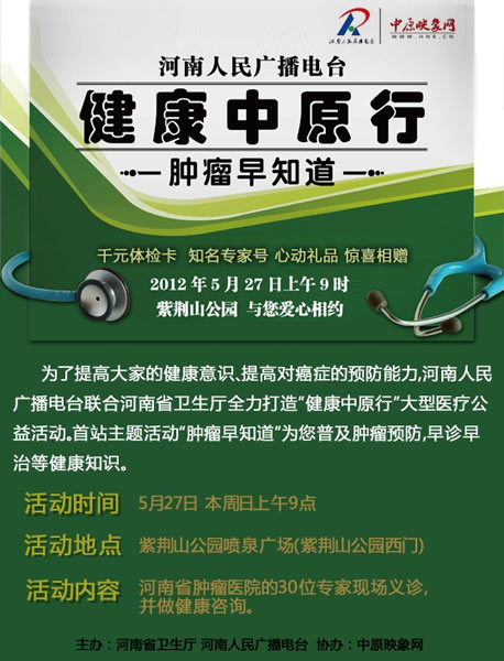 其實,癌癥是可以預防和干預的。為了提高大家的健康意識、提高對癌癥的預防能力,河南人民廣播電臺聯(lián)合河南省衛(wèi)生廳全力打造“健康中原行”大型義診活動。