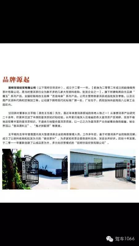 甘田茶葉成立于二零一一年(前身為二零零二年成立的勐海御貢茶葉有限公司,是當(dāng)時(shí)普洱茶行業(yè)為數(shù)不多的幾家大型原料收購,批發(fā)企業(yè)之一)。旗下所轄電商自主品牌“魔玉”系列產(chǎn)品,全國經(jīng)銷商自主品牌“舌底鳴泉”系列產(chǎn)品,公司主營普洱茶成品批發(fā)及零售,以及云南產(chǎn)區(qū)原料代購和定做加工等。
