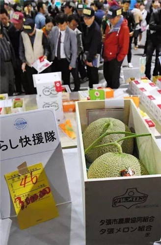 日本北海道夕張市特產(chǎn)“夕張蜜瓜”在今年5月26日的一家批發(fā)市場(chǎng)舉行了首次競(jìng)拍。兩個(gè)裝的夕張蜜瓜禮盒被以300萬日元(約合人民幣17.9萬元)的高價(jià)拍下。