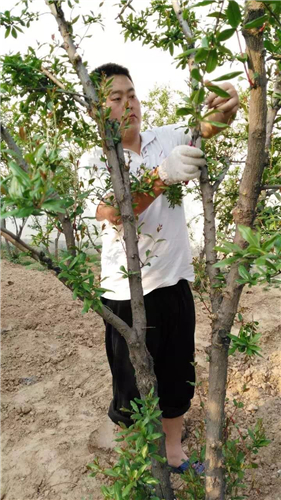 農(nóng)業(yè)生產(chǎn)過程的管理,對石榴的品控尤為關(guān)鍵。既然是農(nóng)民就要會種地,種石榴。要學習扦插樹苗、修剪果樹、施肥、翻地。父輩是靠經(jīng)驗,小綱他們照著做,慢慢發(fā)現(xiàn)經(jīng)驗有時也會錯,每個人說法不一,這就要靠自己一點點去實踐,他們也會把自己摸索的技術(shù)通過萬氏石榴合作社的微信公眾號分享給更多人。