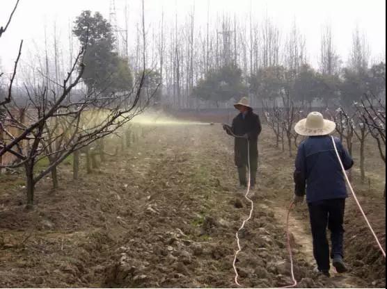 對(duì)果園進(jìn)行深翻,除了改善土壤結(jié)構(gòu)、保護(hù)土壤墑情外,更重要的是搗毀病蟲害的生存場(chǎng)所。因?yàn)橄N蛄、金龜子、金針蟲、地老虎等地下害蟲,冬季均生存在土中;桃小食心蟲、蚜蟲等害蟲喜歡在地縫、雜草內(nèi)產(chǎn)卵或以蛹、幼蟲等形態(tài)越冬。因此,土壤封凍前要深翻園地,刨松樹盤,把害蟲翻到地面上凍死或被鳥類食掉。結(jié)合澆灌的封洪水,可悶死土中蟲卵、幼蟲和蛹。注意在深翻時(shí),要將土壤表面的枯枝、落葉、雜草等一同翻埋到土壤深處,使其上的病原菌不再重復(fù)侵染。有灌溉條件的地方,果樹落葉后要進(jìn)行大水漫灌,把果園澆透,謂之封凍水,以滿足果樹越冬期間對(duì)水分的需求。干旱地區(qū)也可施足基肥后,拉水或擔(dān)水逐樹澆灌,待水滲完后,用土深埋,以蓄墑保水。