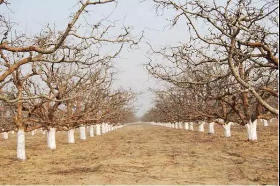 冬季對(duì)樹干要進(jìn)行涂白??蓪?2%的水、22%生石灰、3%石硫合劑和3%食鹽混合均勻涂用。涂白劑的濃度要合適,以涂上樹干后不往下流又不粘團(tuán)為宜,生石灰一定要溶化,否則它吸水放熱會(huì)燒傷樹干。果樹涂白后,不僅能有效地防止果樹冬季凍害、日灼和畜禽嚙啃,而且能對(duì)殘留在枝干上的病蟲起到良好的防治作用。如果在刮皮之后再進(jìn)行涂白,可對(duì)藏匿在枝干粗皮、翹皮或裂縫中的越冬蘋果小食心蟲、梨小食心蟲、梨星毛蟲、紅蜘蛛等進(jìn)行有效的防治。