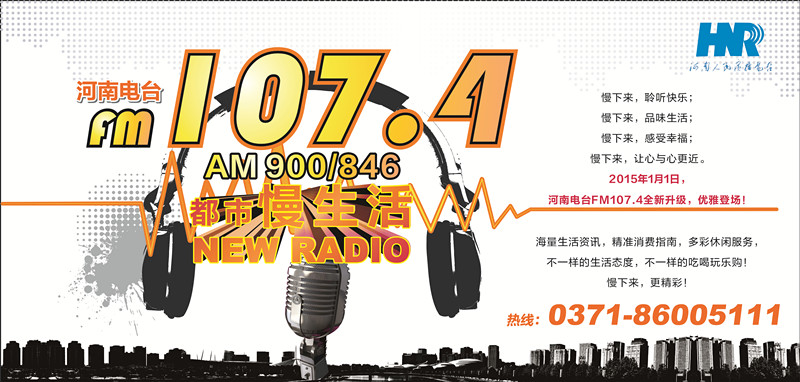 2015年1月1日,河南電臺(tái)FM107.4慢生活NewRadio全新升級(jí),優(yōu)雅登場(chǎng)!海量生活資訊,精準(zhǔn)消費(fèi)指南,多彩休閑服務(wù),不一樣的生活態(tài)度,不一樣的吃喝玩樂購!慢下來,我的“心”常態(tài)!河南電臺(tái)1074慢生活NewRadio(FM107.4 AM900/846)。