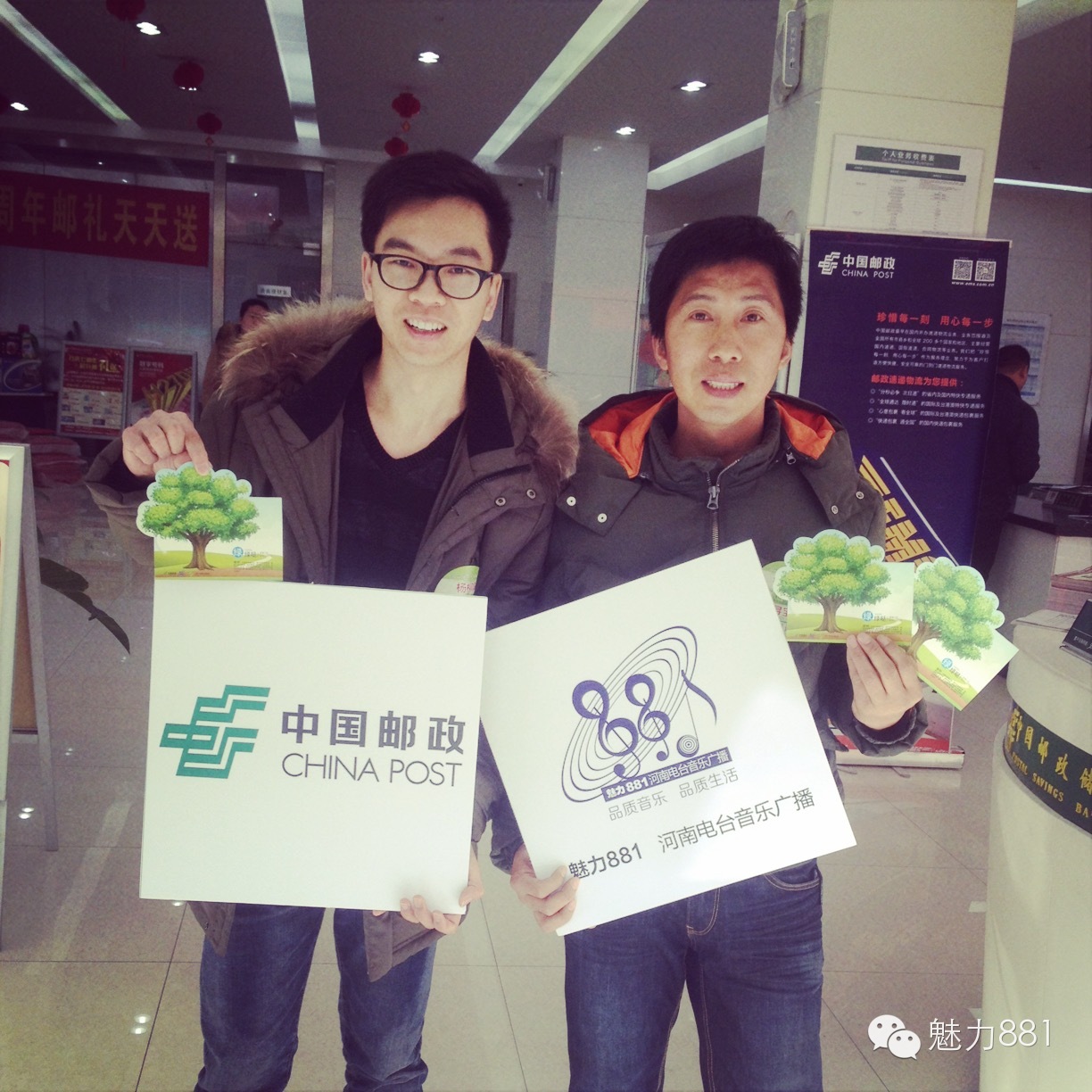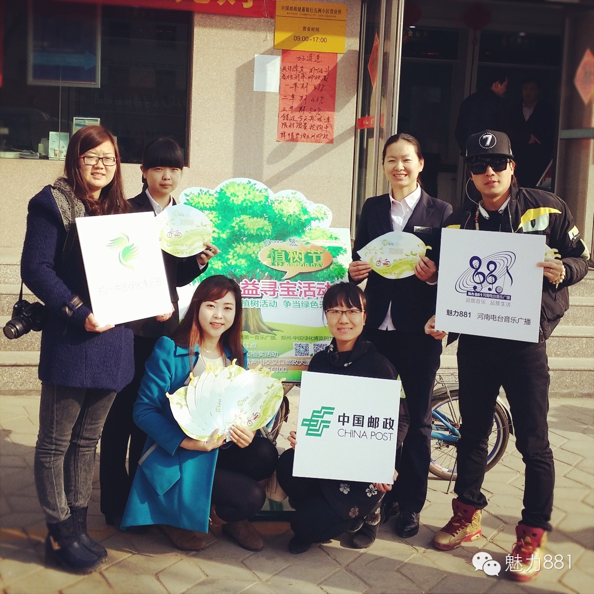 3月12日植樹節(jié),魅力881河南第一音樂廣播攜手鄭州郵政一同打造的“綠色尋寶大作戰(zhàn)”公益活動圓滿舉行!今天有四位DJ帶領四隊聽眾前往市區(qū)指定郵政網點,尋找本次活動限量定制的環(huán)保明信片。首先要為獲勝的小伙伴鼓掌,同時也要感謝所有參與本次活動的親們,你們都棒棒噠!本次公益活動的每一位參與者都是綠色環(huán)保小戰(zhàn)士,有你們在,綠城的樹一定會更綠,天一定會更藍!最后要特別感謝本次活動合作方鄭州郵政、綠博園的大力支持,再次感謝魅力881聽眾的參與!