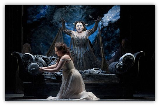 《復(fù)仇火焰在心中燃燒》是夜后不惜以斷絕母女關(guān)系相威脅,命令帕米娜殺死薩拉斯特羅所唱的一段詠嘆調(diào)。這是一首情感激越、充滿仇恨、難度極高的花腔女高音唱段,音樂(lè)的華麗與力度非比尋常,是花腔女高音聲部技巧與表現(xiàn)力高水平的體現(xiàn),被視為這一聲部在歌劇曲目中難度最高之列。