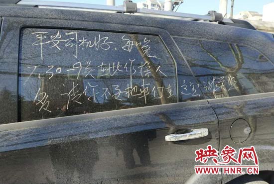 映象網(wǎng)快訊(記者 邱延波 文/圖)眾所周知,在全國(guó)各地,大爺大媽們對(duì)廣場(chǎng)舞的熱愛(ài),幾乎是風(fēng)雨無(wú)阻,雷打不動(dòng)。鄭州市一車輛停在路邊,影響了大爺大媽們跳廣場(chǎng)舞,是可忍孰不可忍,他們?cè)谲嚿蠈懴拢⑼海?,提醒車主早點(diǎn)把車開(kāi)走。