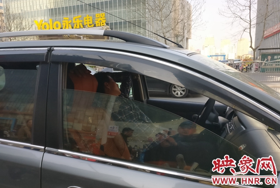 記者根據(jù)楊華民手指的方向看去,國貿(mào)360商場門前的花園路上,停車等人的機動車排起了長龍。記者與民警走到一輛車牌號為豫A559B8的機動車前看到,司機正在座位上睡覺,而其車輛則是停在了路中間的位置,嚴重影響了道路的暢通。