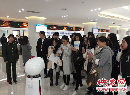 映象網(wǎng)快訊(記者 駱瓊 阮海峰 王邵怡 文/圖)4月1日上午,中國(河南)自由貿(mào)易試驗(yàn)區(qū)掛牌儀式在鄭州片區(qū)綜合服務(wù)中心舉行。這里入駐了17個政府部門,可辦理211項(xiàng)業(yè)務(wù),為區(qū)域內(nèi)的企業(yè)和居民辦事提供了極大的便利。