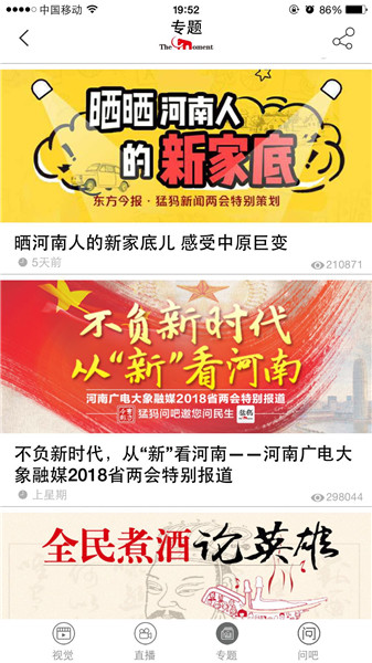 映象網(wǎng)訊(記者 秦雯)看兩會最熱最新鮮,看百姓關(guān)注,看代表委員風(fēng)采,看各界如何解讀報告。1月22日起,河南進入2018兩會時間。大象融媒帶著問題聚焦兩會,帶著答案回應(yīng)網(wǎng)民。其間,大象融媒旗下所屬各媒體大顯身手,貢獻出大量精彩的報道,直播、高清圖、系列策劃及H5產(chǎn)品等,這些內(nèi)容一經(jīng)推送,就吸引百姓高度關(guān)注,有些板塊更是形成“兩會熱門話題”和“網(wǎng)絡(luò)熱詞”,被網(wǎng)友分享,引代表委員熱議。
