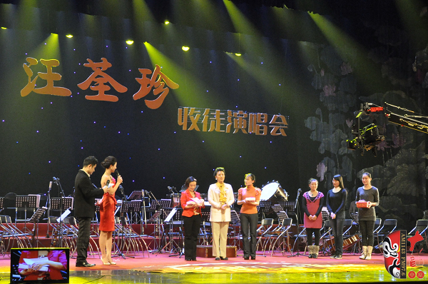 本次成為汪荃珍徒弟的分別是許昌市豫劇團(tuán)的何艷芳和三團(tuán)的韓亞冰,在拜師儀式上,著名戲劇評(píng)論家荊樺用“常大師的好學(xué)生、舞臺(tái)上的好演員、劇團(tuán)里的好團(tuán)長、朋友們的好朋友”來形容汪荃珍,汪荃珍自己也說,要銘記常香玉大師的教誨——“先做人,后演戲,戲比天大”,為戲曲事業(yè)培養(yǎng)更多優(yōu)秀人才。讓人印象深刻的是,汪荃珍沒有按照傳統(tǒng)的形式接受弟子的行禮,而是與弟子攜手共同向全場(chǎng)觀眾三鞠躬致意,贏得了觀眾們熱烈的掌聲,之后,汪荃珍與兩位弟子一起表演了《香魂女》當(dāng)中的經(jīng)典選段,將整場(chǎng)演出的氣氛推向了高潮。