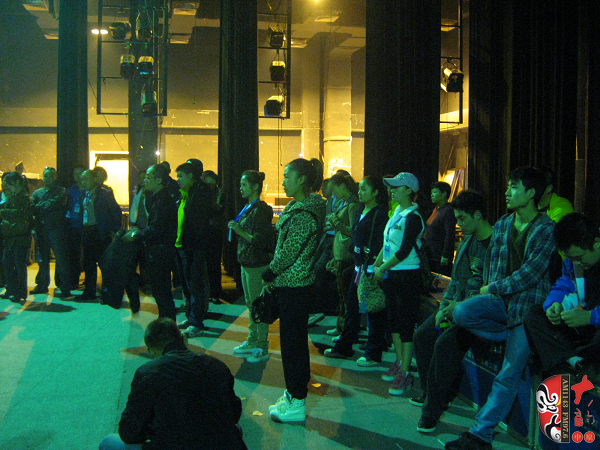 每到一地演出都要提前走臺(tái) 這是走臺(tái)之前的集合