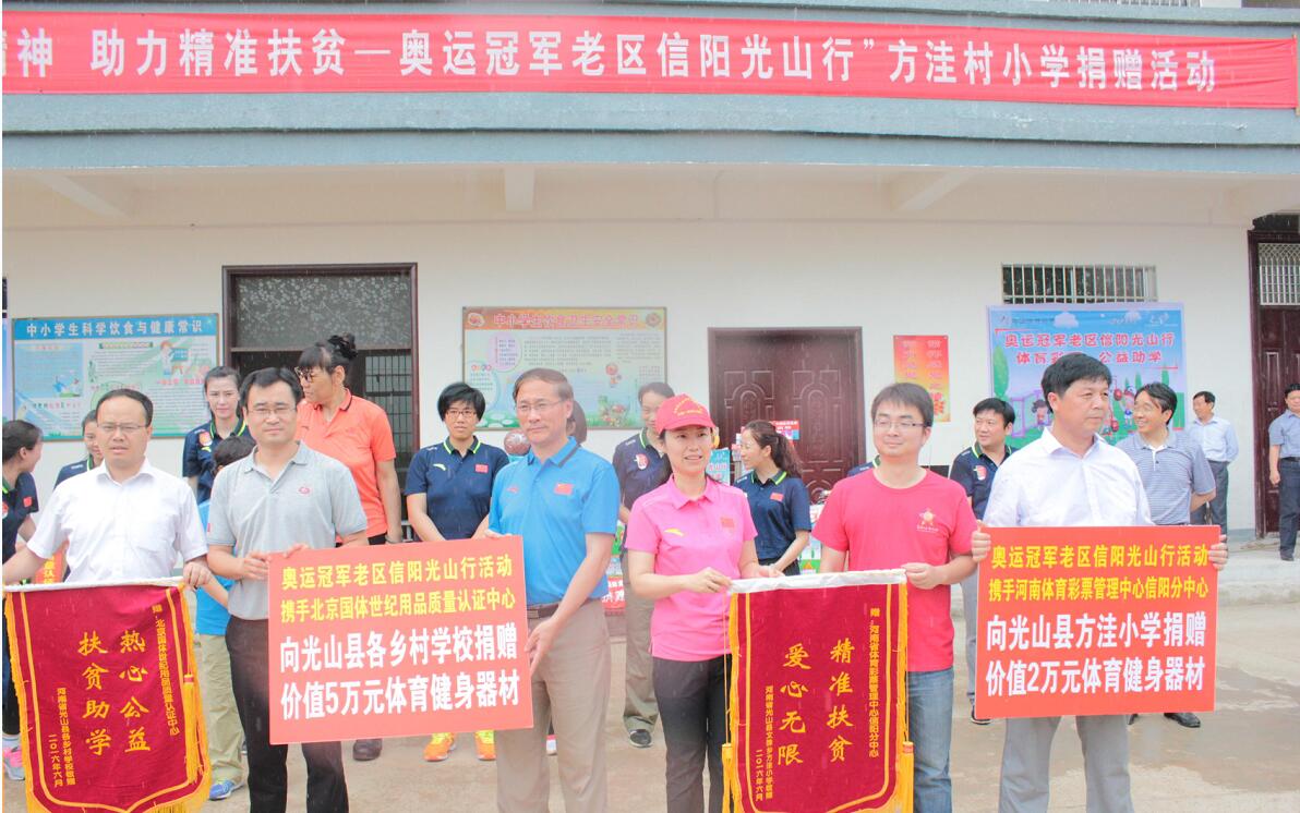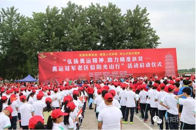 6月20日上午,由國家體育總局人力資源開發(fā)中心、河南省體育局和信陽市人民政府主辦,信陽市體育局、信陽市文明辦、信陽市扶貧辦和光山縣人民政府承辦的“弘揚(yáng)奧運(yùn)精神,助力精準(zhǔn)扶貧——奧運(yùn)冠軍老區(qū)信陽光山行”活動(dòng)啟動(dòng)儀式在光山文殊一中隆重舉行。