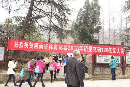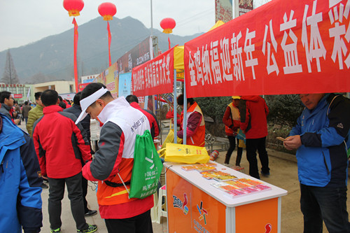 全民健身活動(dòng)連年開展,并且已經(jīng)形成全國(guó)聯(lián)動(dòng),區(qū)域互動(dòng),百姓自動(dòng)的蓬勃景象,這離不開體彩彩民朋友點(diǎn)滴的愛(ài)心匯聚和體彩人不分晝夜的堅(jiān)持拼搏,為了展示體育彩票的公益性和玩法樂(lè)趣,信陽(yáng)分中心還在開幕式現(xiàn)場(chǎng)搭建了四張大型展板,“公益體彩 快樂(lè)操場(chǎng)”“送體育進(jìn)鄉(xiāng)村”“體彩?新長(zhǎng)城助貧困大學(xué)生項(xiàng)目”“貧困受災(zāi)地區(qū)愛(ài)心捐贈(zèng)”等等,散發(fā)出一縷縷公益光芒,溫暖著寒冬里登山人的心。 “河南體彩攜手京東購(gòu)物送300萬(wàn)大樂(lè)透代金券”“購(gòu)買頂呱刮彩票 搶百萬(wàn)紅包 贏華為手機(jī)活動(dòng)”,特別吸引了年輕登山人群的圍觀和關(guān)注。信陽(yáng)分中心開展戶外即開型銷售主推“金雞納?!毙履晏灼?,雞年登雞公山購(gòu)買“金雞納?!表斶晒尾势庇兄厥獾囊饬x,購(gòu)買滿30元還有登山“能量包”相送,為健身登高增添動(dòng)力。