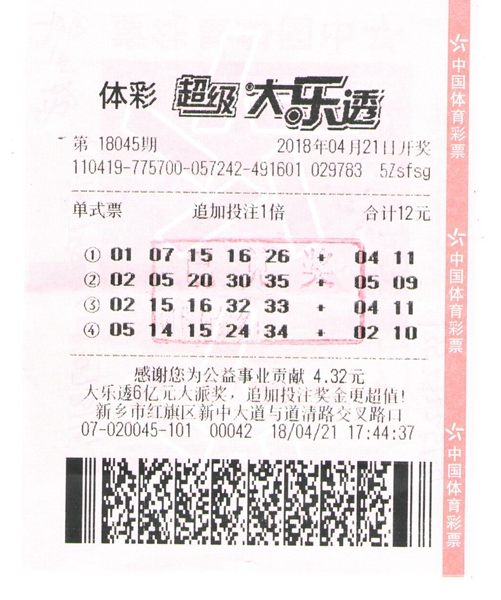 張先生這張中獎的彩票上,共有四注,屬單式追加投注,票面金額12元。據(jù)張先生介紹,前兩注是他從體彩銷售網(wǎng)點推薦的號碼中選出的,后兩注是他長期守號的號碼,這次是第二注讓他幸運(yùn)的斬獲大獎!