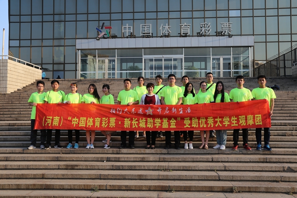 2017年,首批得到“中國體育彩票·新長城助學(xué)基金”資助的信陽師范學(xué)院2013級優(yōu)秀大學(xué)生畢業(yè)之際,河南省體育彩票管理中心還邀請其中的部分學(xué)生代表,在老師的帶領(lǐng)下到北京觀摩中國體育彩票現(xiàn)場開獎,在他們踏入社會進入工作崗位之前,開闊眼界并深入了解和見證中國體育彩票作為國家公益彩票的公益屬性和公信力。