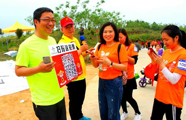 分中心黨員同志為參賽者提供免費(fèi)飲水服務(wù)