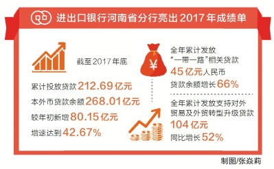 1月29日,進出口銀行河南省分行行長吳啟金表示,過去一年,分行努力貫徹習近平新時代中國特色社會主義思想,助力河南打造內(nèi)陸開放新高地。截至2017年底,進出口銀行河南省分行累計投放貸款212.69億元,本外幣貸款余額268.01億元,有力助推我省企業(yè)“走出去”。