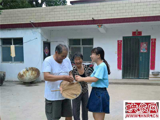 不多時,村委會的辦公室中就擠滿了聞訊而來的村民,志愿者們一一為他們測量血壓,不少村民離開前邀請志愿者們道“孩子,來俺家,給你們下碗好吃的撈面條”,更多的村民測完血壓后并未立即離去,而是留下與志愿者們親切交談,村民的質(zhì)樸與志愿者的奉獻(xiàn)精神在這一間小小的辦公室中緩緩交融,在炎炎夏日里帶來些許清涼。