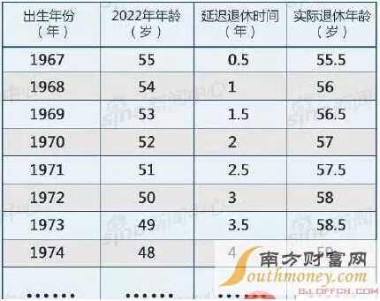以55歲退休為標(biāo)準(zhǔn),假定每年延長退休時間為6個月,自方案實施起,逐年累計遞增,直到達(dá)到新擬定的退休年齡。