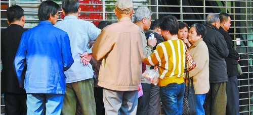 昨日8點(diǎn)30分記者在工行福州吉祥支行營(yíng)業(yè)網(wǎng)點(diǎn)看到,雖然周末上午營(yíng)業(yè)時(shí)間為9點(diǎn),但仍有20余位老人自發(fā)地在網(wǎng)點(diǎn)門口排隊(duì)等待辦理國(guó)債認(rèn)購(gòu)等相關(guān)業(yè)務(wù)(如上圖)。一位客戶告訴記者,只要有閑錢,往年遇上國(guó)債發(fā)行她都會(huì)購(gòu)買,昨日國(guó)債發(fā)行她同樣不會(huì)錯(cuò)過(guò)。