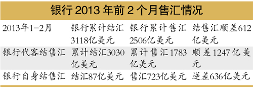 國家外匯管理局25日公布的統(tǒng)計數(shù)據(jù)顯示,2013年2月我國銀行代客結(jié)匯1212億美元,售匯890億美元,結(jié)售匯順差322億美元。這是我國自去年9月份以來銀行代客結(jié)售匯連續(xù)第六個月出現(xiàn)順差。