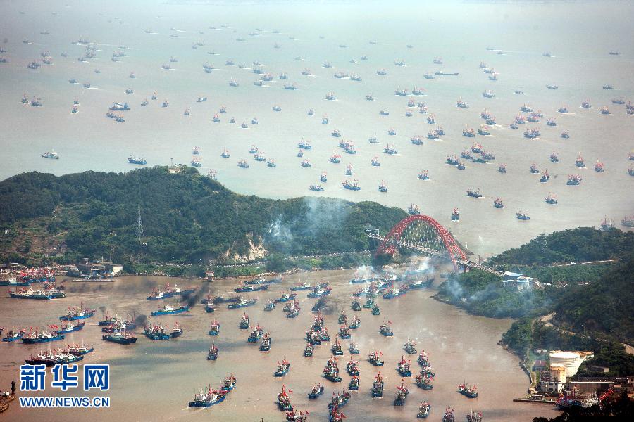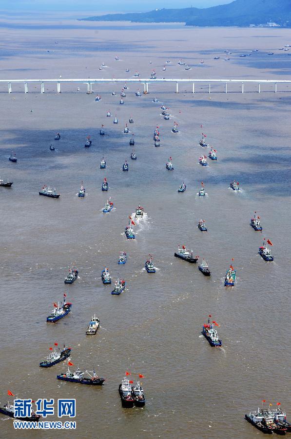 9月16日,浙江省舟山市沈家門漁港的漁船出港經(jīng)過朱家尖大橋開赴漁場。當(dāng)日,為期3個半月的東海伏季休漁結(jié)束,眾多漁船劈波斬浪,開往漁場。   新華社發(fā)(華志波 攝)