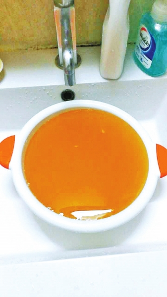 昨天下午6點,記者從薛先生處得知,他家里的水質(zhì)比12日晚與13日中午清了不少,但仍帶有一點黃色。