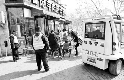 2月19日,鄭州緯五路上一家飯店占道經(jīng)營(yíng),城管沒(méi)有立馬上前制止,而是等食客吃罷飯后,才催促店主收攤。這樣的暖心細(xì)節(jié)被人抓拍,并發(fā)至網(wǎng)絡(luò),讓鄭州城管的溫情執(zhí)法“火”了一把,不少市民紛紛點(diǎn)贊。