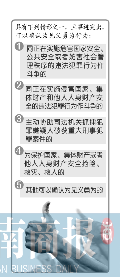 河南商報(bào)記者注意到,這次《意見(jiàn)稿》提到,對(duì)見(jiàn)義勇為人員可以給予的獎(jiǎng)勵(lì),包括嘉獎(jiǎng)、頒發(fā)獎(jiǎng)金、授予榮譽(yù)稱(chēng)號(hào)以及其他獎(jiǎng)勵(lì)。