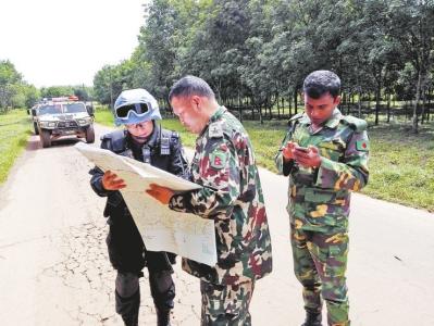 在2016年9月5日,巴波盧遠(yuǎn)程巡邏勤務(wù)中,他和戰(zhàn)友像往常一樣前往星基地與軍事觀察員匯合開(kāi)展聯(lián)合巡邏勤務(wù)。由于那次屬于跨州遠(yuǎn)程巡邏,路途較遠(yuǎn),在現(xiàn)場(chǎng)聽(tīng)取軍事觀察員情況通報(bào)時(shí),細(xì)心的他了解到軍事觀察員通報(bào)的巡邏路線與他們接到的指令并不一致,不僅路程更遠(yuǎn),而且要繞道沿途情況不明的小路。在向上級(jí)報(bào)告后,他主動(dòng)向軍事觀察員解釋,可軍事觀察員態(tài)度強(qiáng)硬,聲稱巡邏路線應(yīng)由他們確定。面對(duì)這些,他據(jù)理力爭(zhēng),并對(duì)兩種巡邏路線進(jìn)行比對(duì),分析利弊,辯駁得軍事觀察員啞口無(wú)言。最終,軍事觀察員同意按照前期指令的巡邏路線行動(dòng)。不僅如此,軍事觀察員還豎起大拇指稱贊“You areprofessional!(你是專業(yè)的)”。而他則將手放在胸前的五星紅旗上,微笑著答道“Thanks?。ㄖx謝)”。
