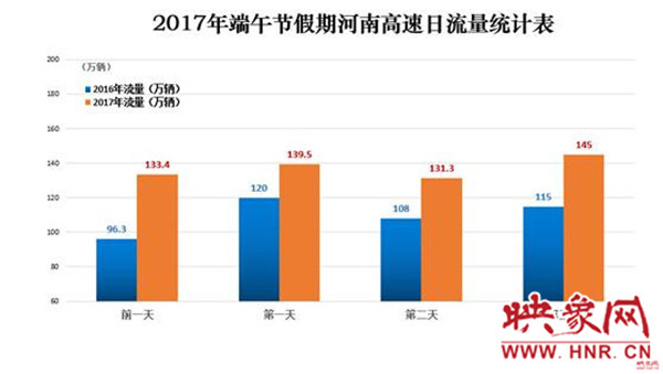 映象網(wǎng)快訊(記者 阮海峰 文/圖)5月30日,映象網(wǎng)記者從河南省交通廳獲悉,今年“端午”假期河南高速出口總流量為415.8萬(wàn)輛,與2016年343萬(wàn)輛同比上漲21%。假期日均流量為138.6萬(wàn)輛,與2016年114萬(wàn)輛同比上漲21.5%。為2017年上半年日均流量120萬(wàn)輛的1.15倍。