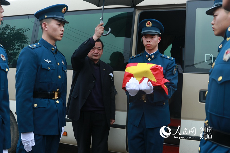 3月7日15時許,經(jīng)過近3個小時長途跋涉,空降兵某旅直升機(jī)團(tuán)四級軍士長、救火英雄李道洲魂歸故里——河南省光山縣。