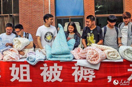 2015年05月31日,北京,清華大學(xué)生物科技學(xué)院大三學(xué)生小磊(左一)花800元買下了兩套學(xué)姐的被子。清華大學(xué)生物科技學(xué)院的大三學(xué)生小磊說,他在閑魚app上花了近800元拍下了兩床學(xué)姐的舊被子,就旁人看來這簡直就是“天價(jià)”,可小磊卻稱 “不貴!學(xué)姐馬上要回韓國了,我仰慕她三年,留樣?xùn)|西給自己作個(gè)念想也好”,小磊說。