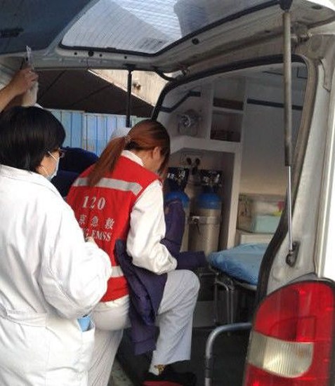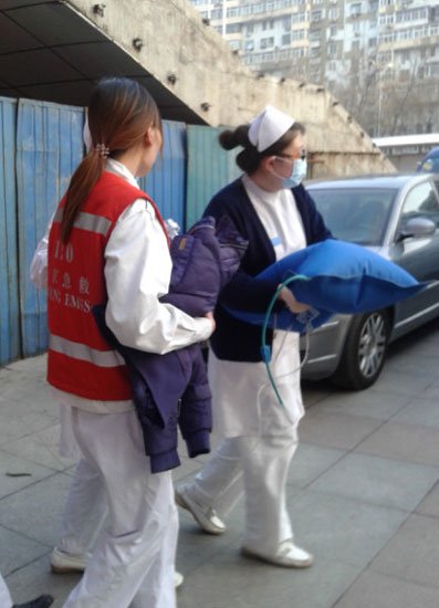 3月20日,北京,急救人員抱嬰兒去醫(yī)院。