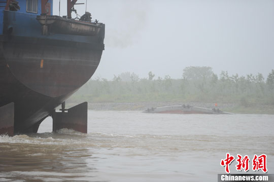 5月17日凌晨,長(zhǎng)江無為境內(nèi)的白茆水道發(fā)生一起三艘外地船舶碰撞事故,造成7人失蹤。中新社發(fā) 張婭子 攝
