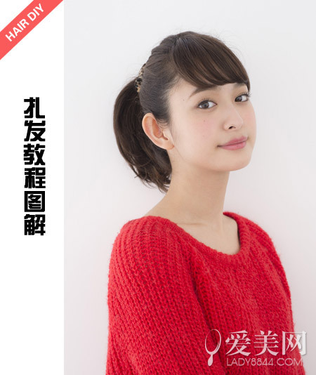 step2:留出頭頂?shù)念^發(fā)將腦后的頭發(fā)綁成馬尾。