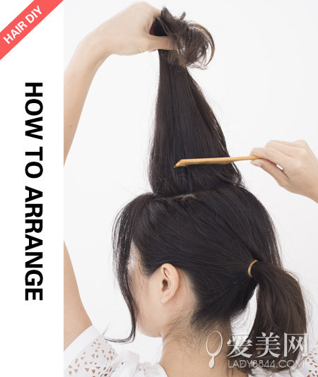 step2:將頭發(fā)綁成高聳的馬尾。