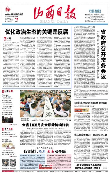 9月12日《山西日?qǐng)?bào)》頭版