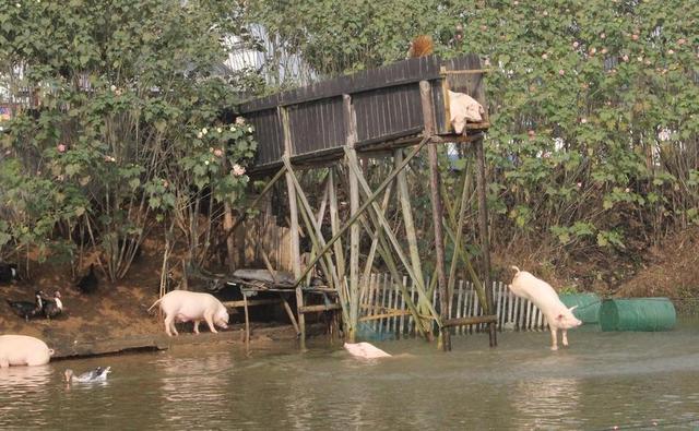 湖南一農民每天逼"跳水"提高豬肉品質
